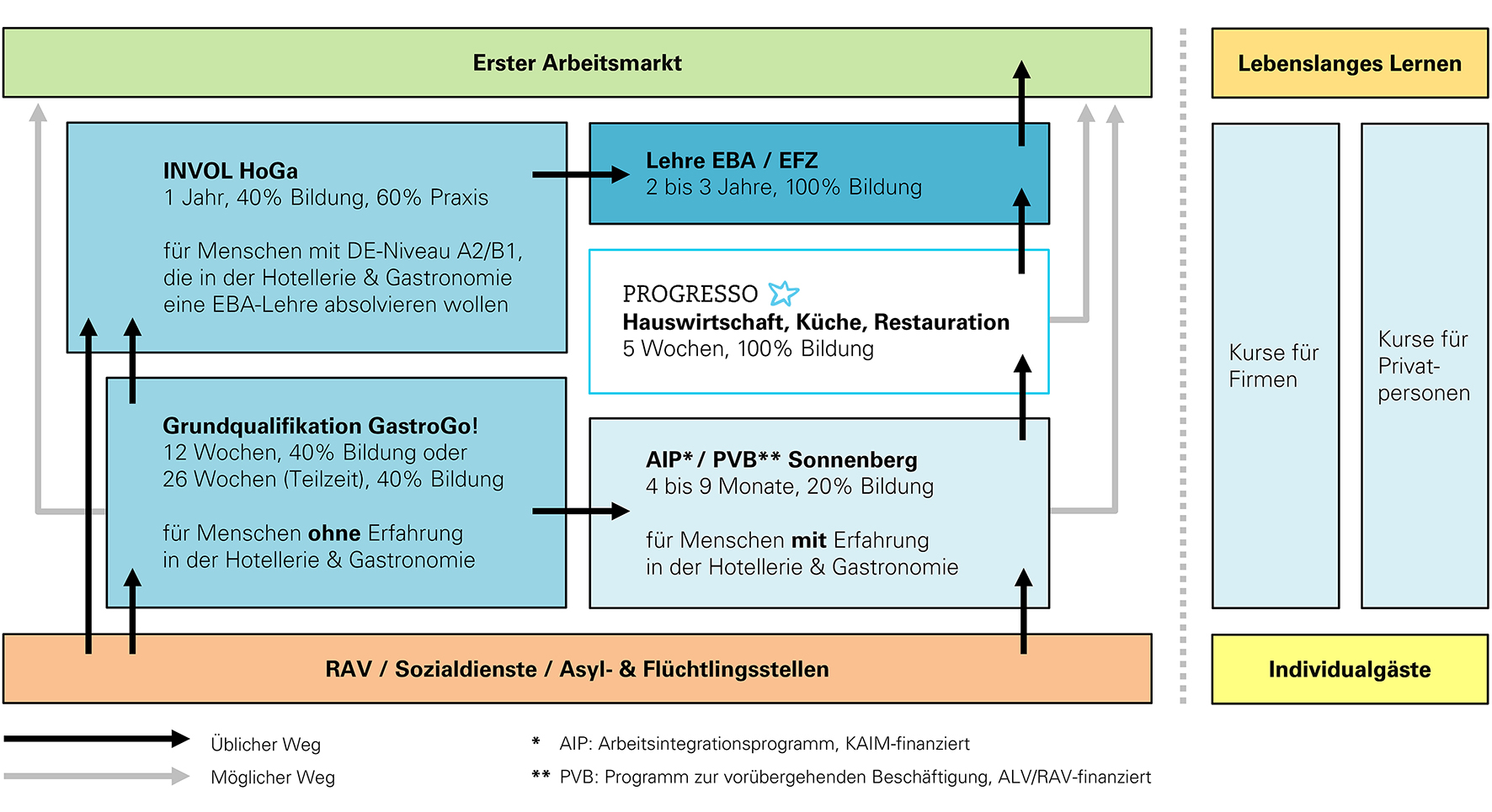 Ausbildungskurse AIP für Menschen, welche sich in einer Notlage befinden und eine Stelle suchen